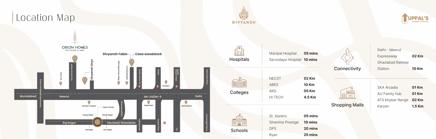 Strategically located along NH-24, residents of Divyansh Orion Homes